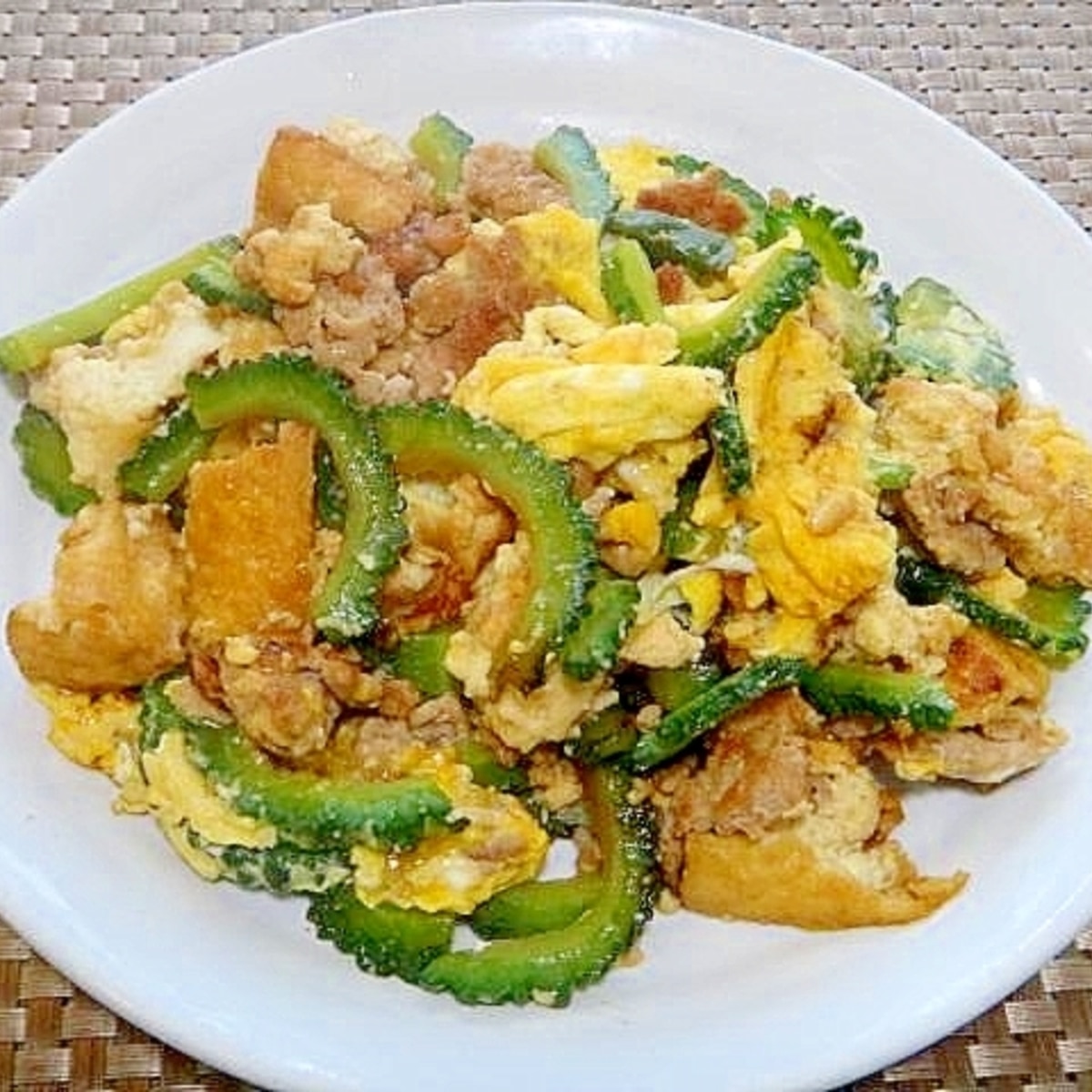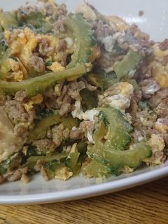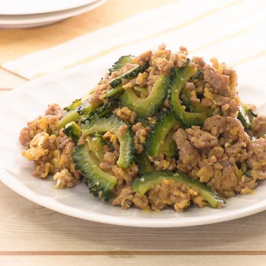 少ない調味料で簡単! 豚ひき肉とゴーヤのめんつゆ卵炒め。