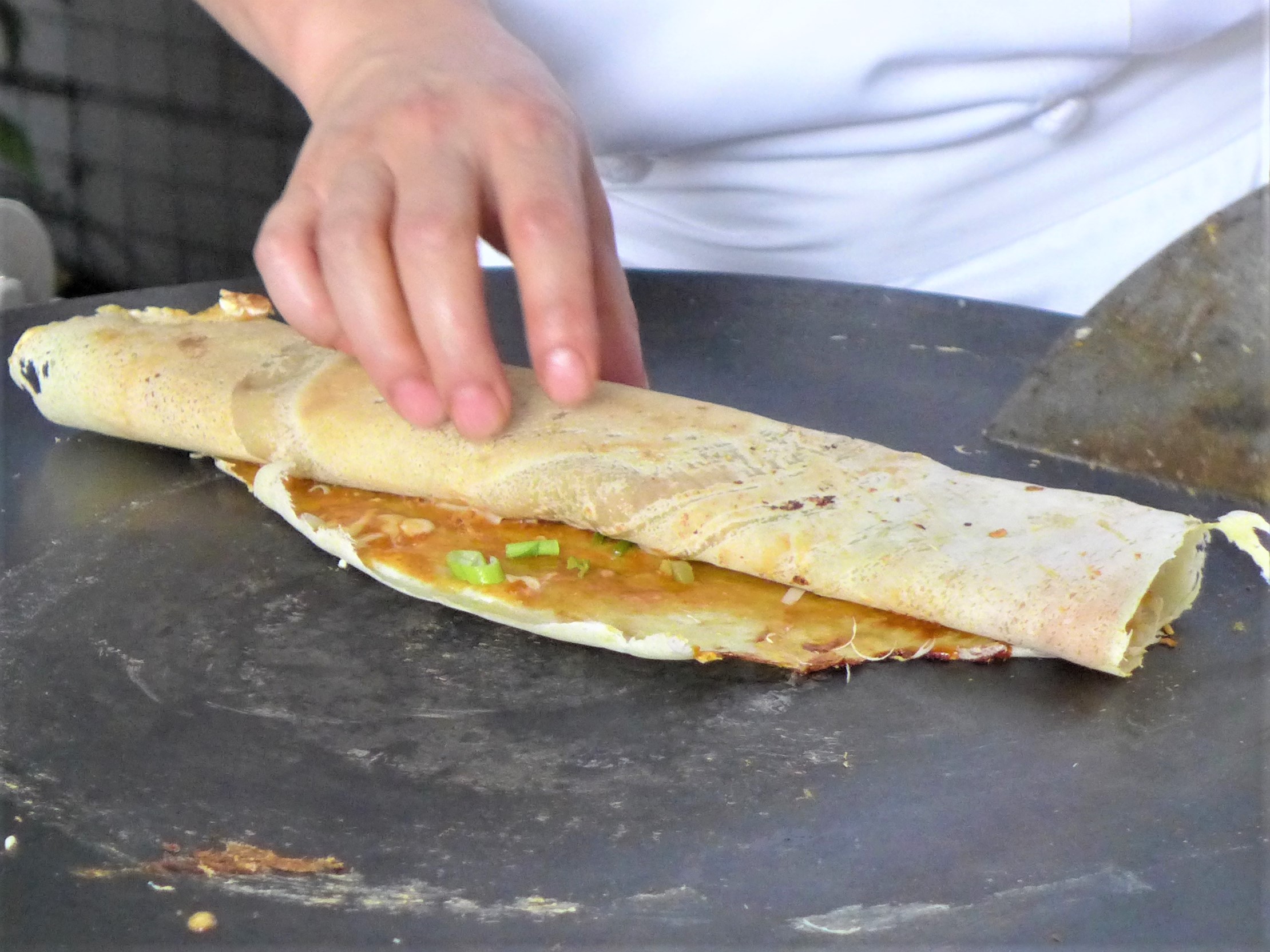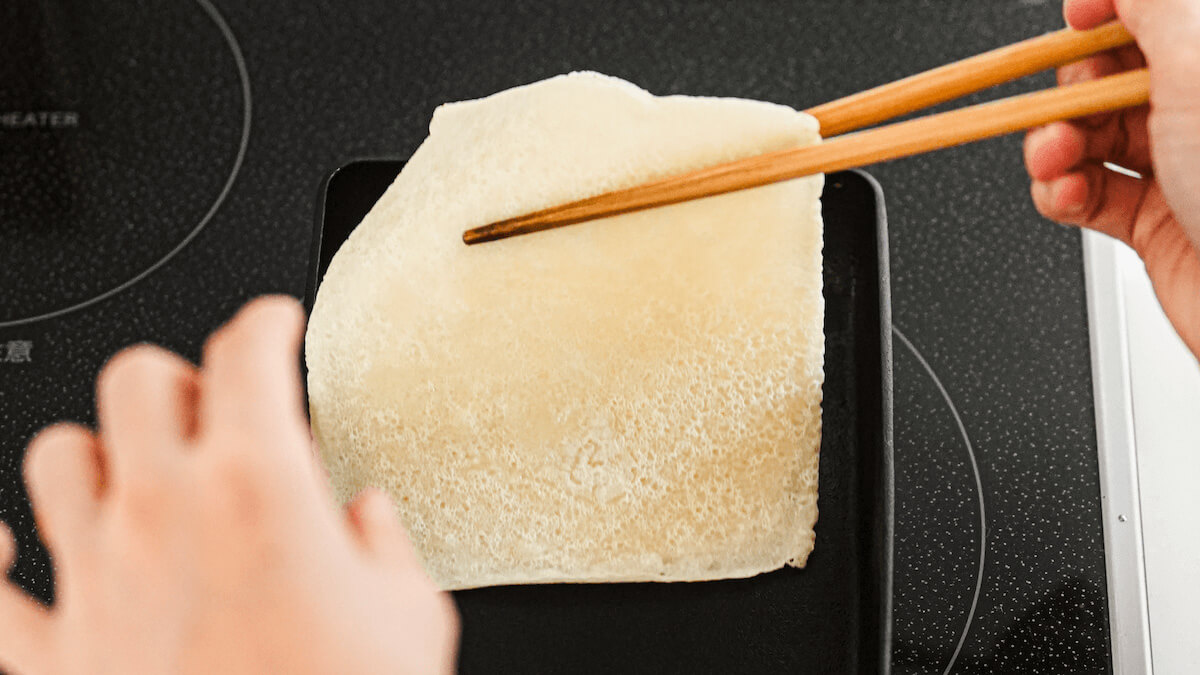 フライパン2分で焼ける台湾の朝メシ「蛋餅 ダンピン 」風クレープをおつまみにも、おやつにも! - メシ通ホットペッパーグルメ。