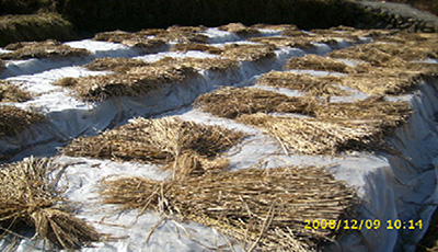 霜の降りる前に生姜を穴に保存します。 - <Vege8>オーガニックファーム綾。