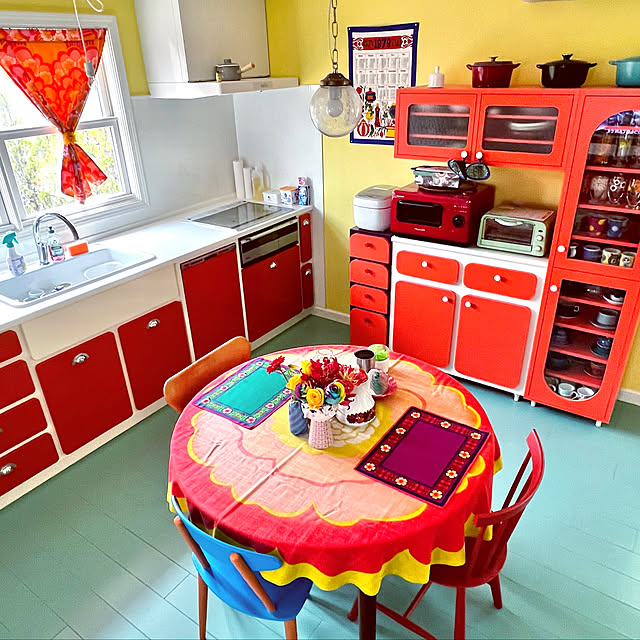 昭和レトロ レトロポップ かご キッチン 雑貨 セット インテリア 当時物 生活感とトキメキがぎゅうぎゅうのキッチン🍳キッチン 築古インテリア 築古賃貸インテリア築古 レトロポップ レトロインテリア カラフルインテリア一人暮らしインテリア 昭和レトロインテリア。