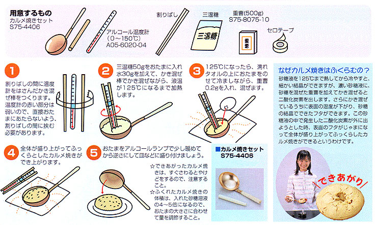 家庭でトライ!! カルメ焼きを作ろう : 日本化学会 化学だいすきクラブ。