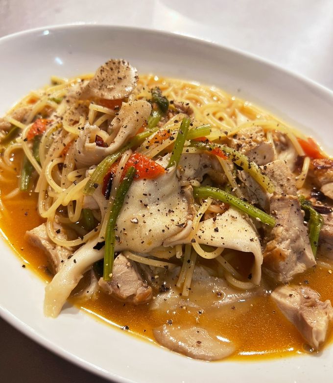 鶏肉ときのこのガーリックスパゲティレシピピエトロ - 美味しいドレッシングとパスタを。