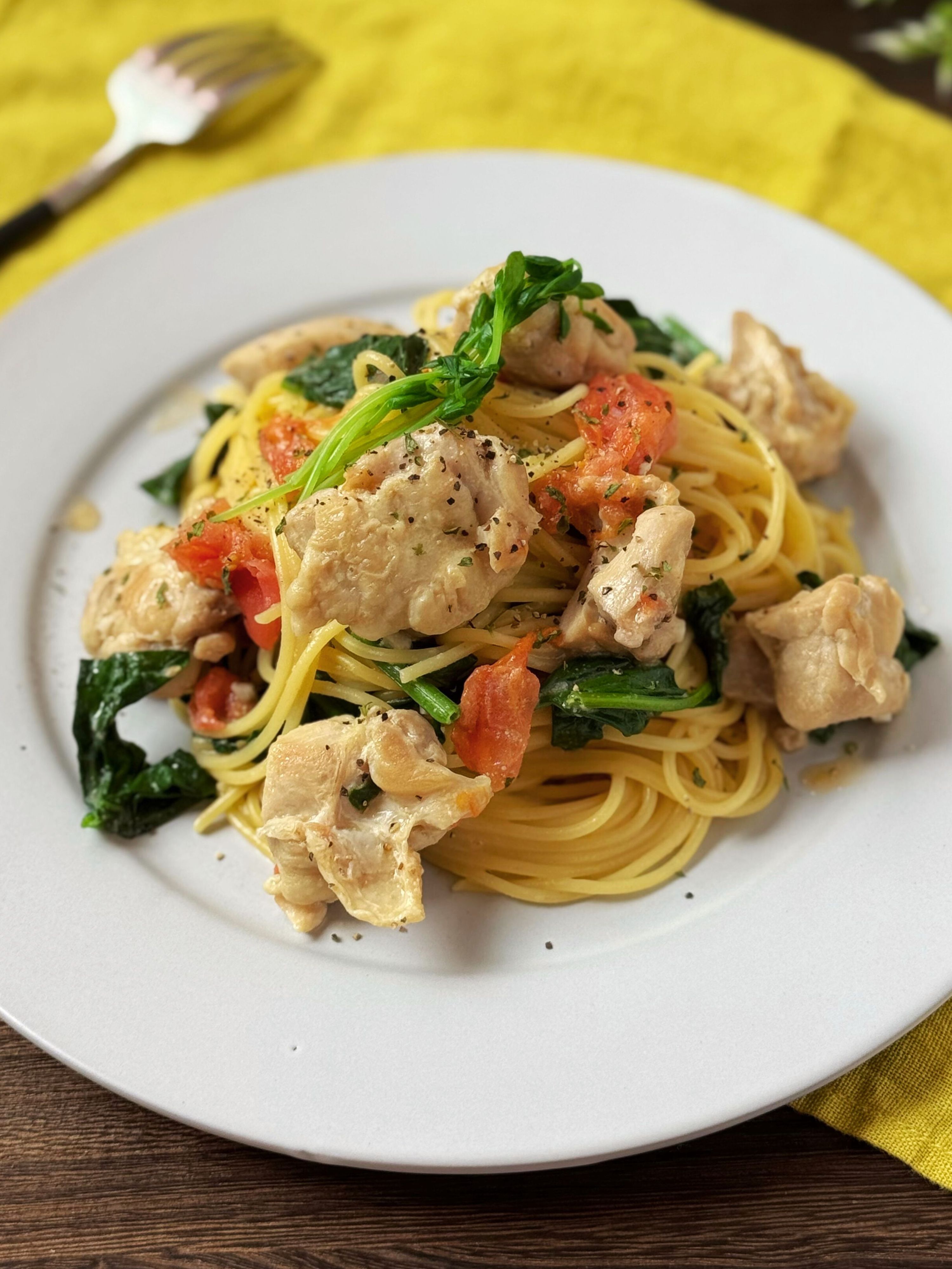 簡単ぱぱっと 小松菜とチキンのガーリックパスタ レシピ・作り方 by Bern - 楽天レシピ。