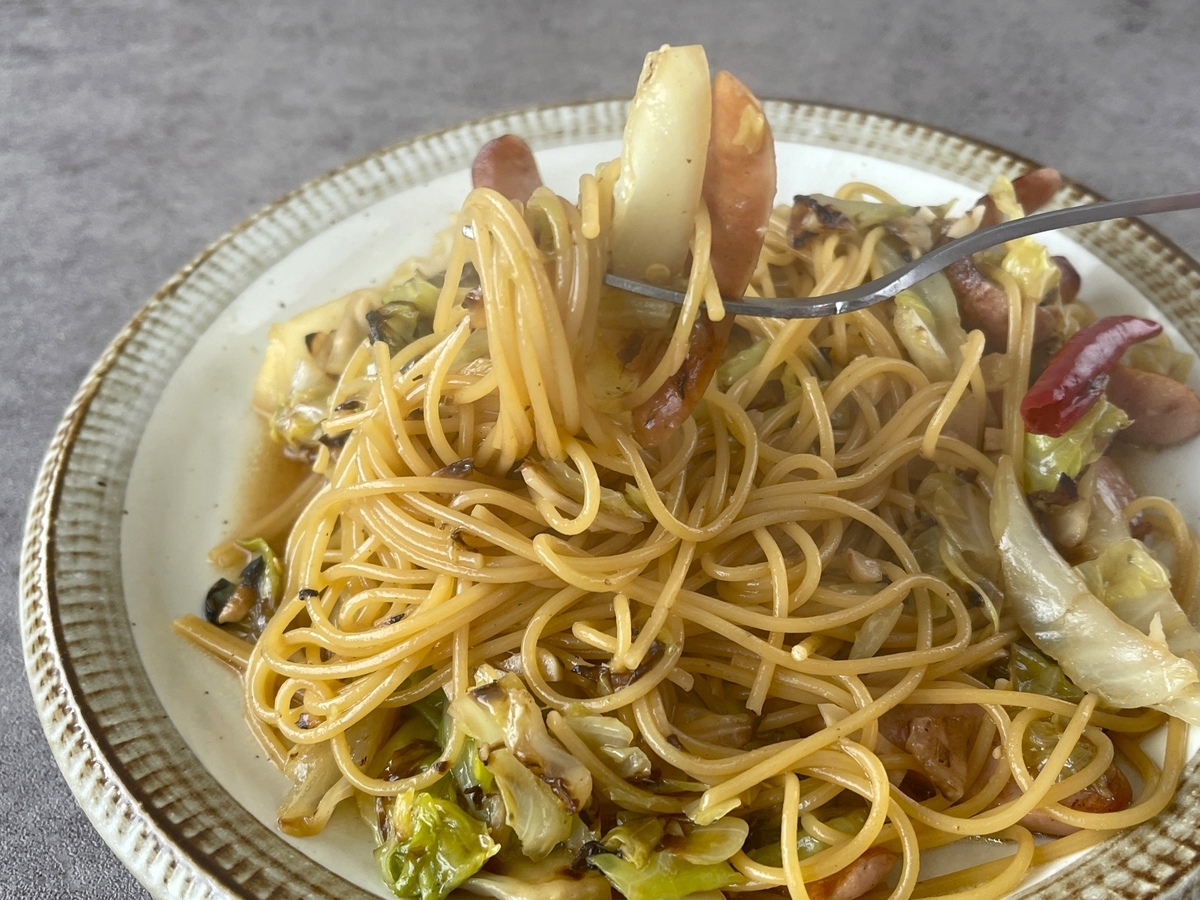 鶏とキャベツのうま塩パスタフライパンひとつやみつき。