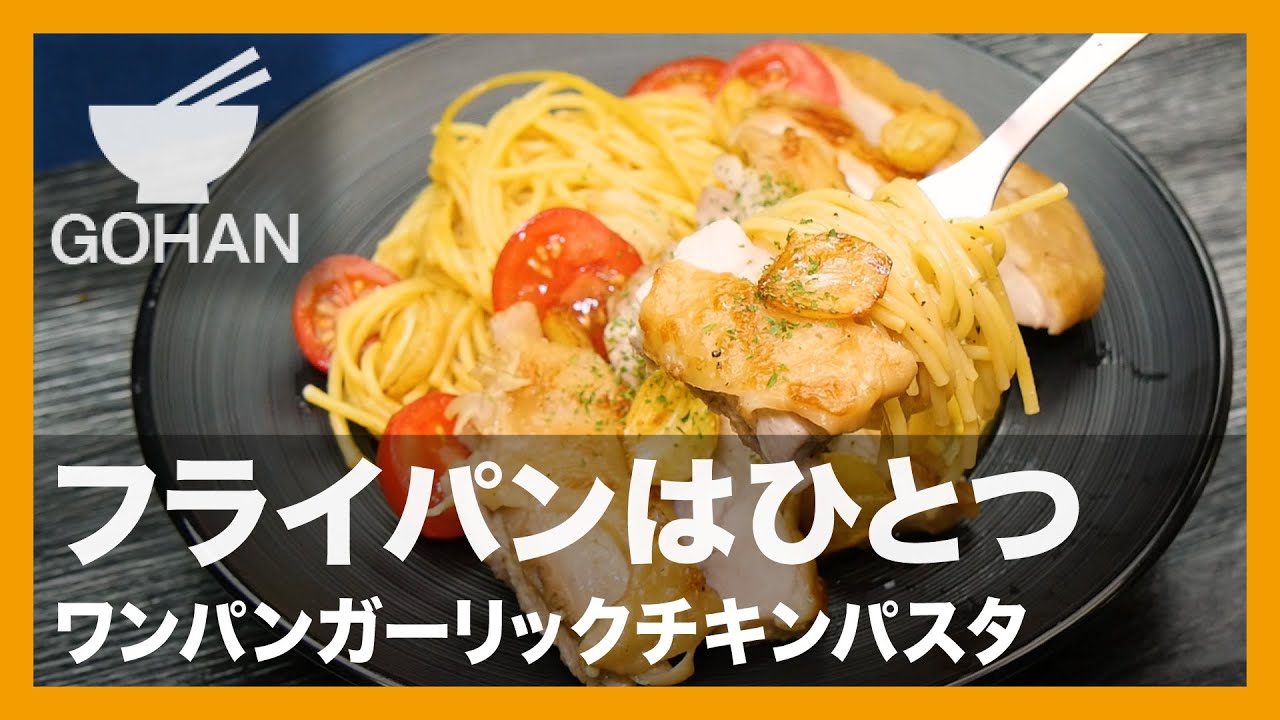 簡単レシピ フライパンはひとつ『ワンパンガーリックチキンパスタ』の作り方 男飯- YouTube。