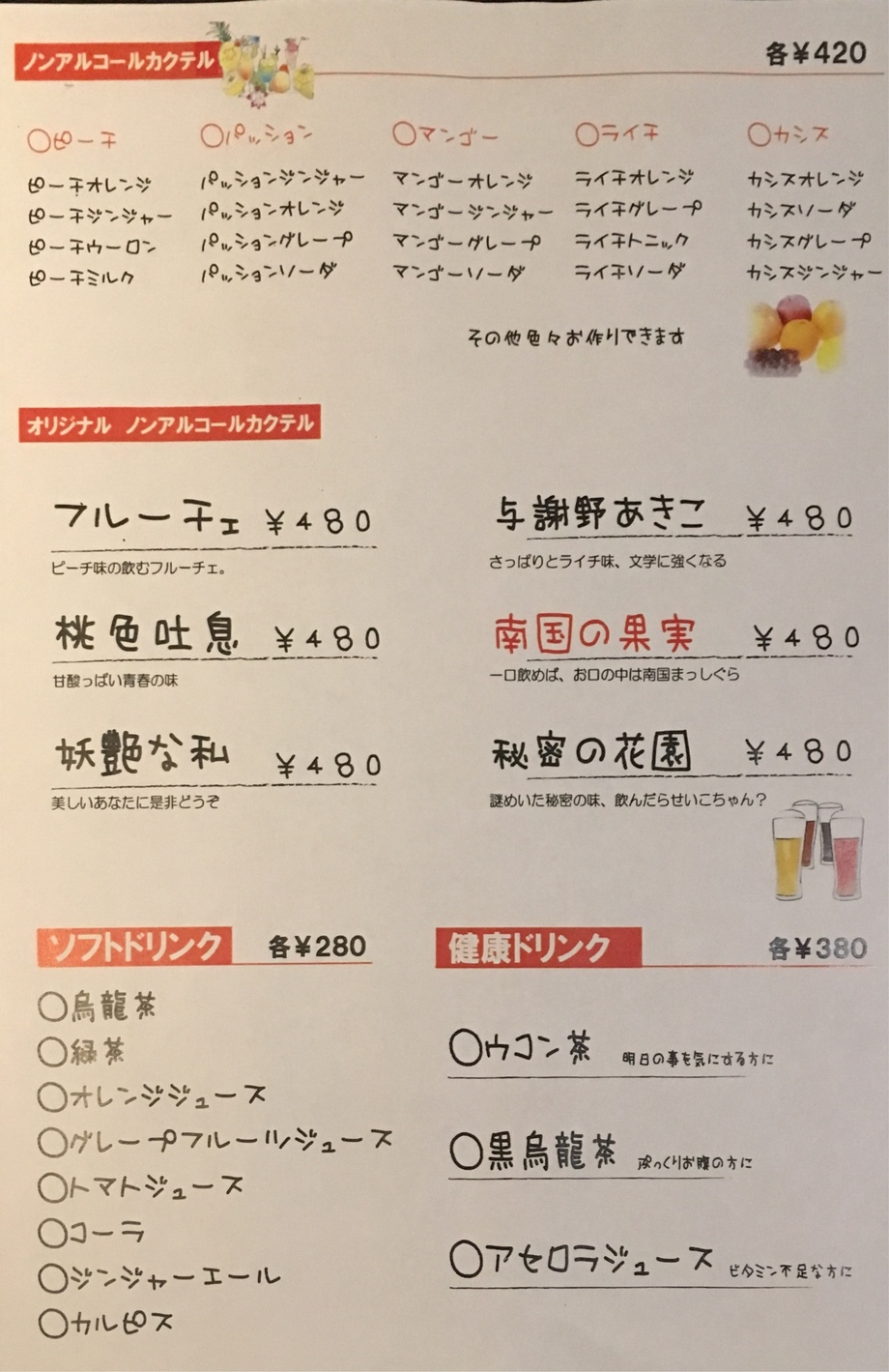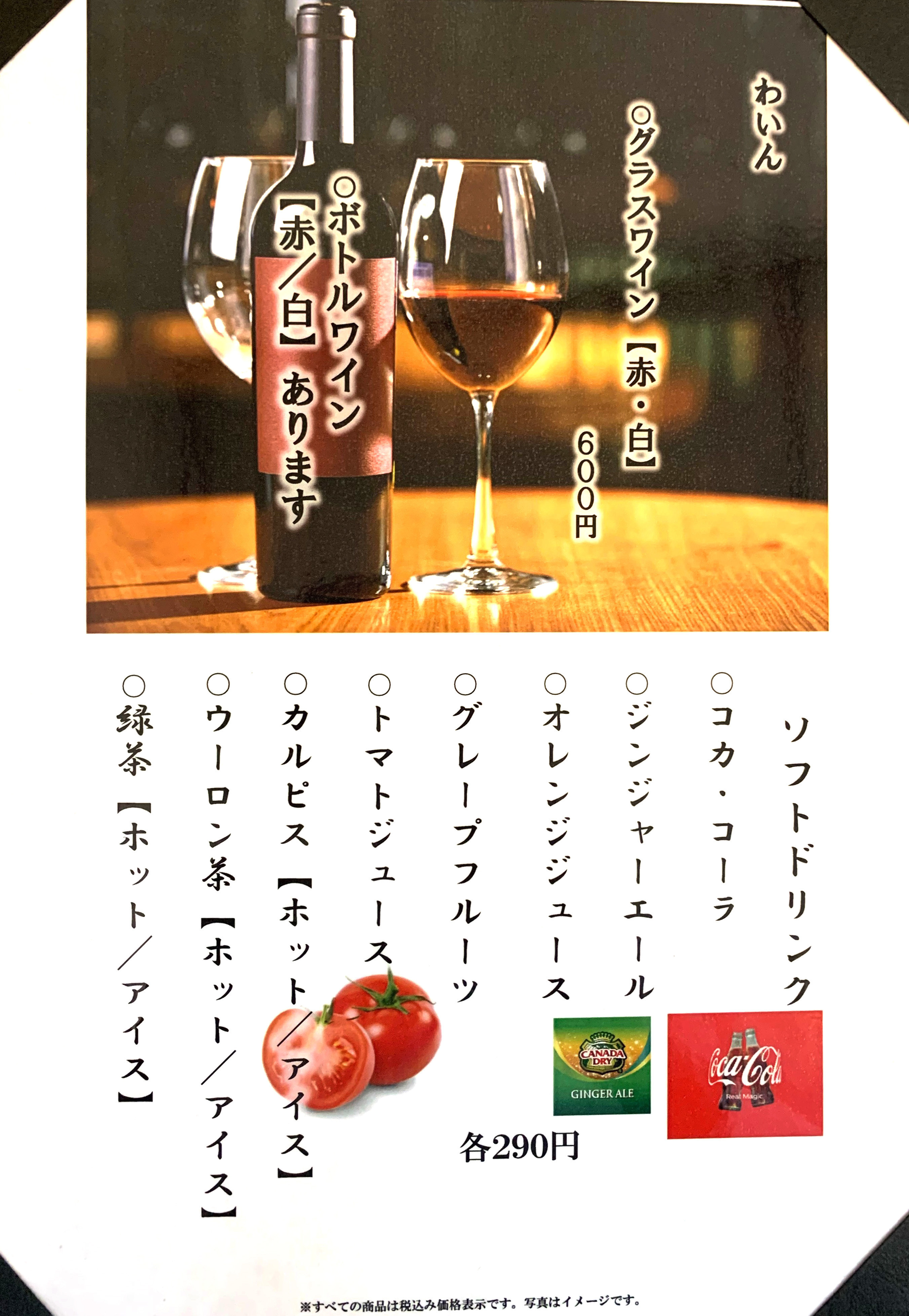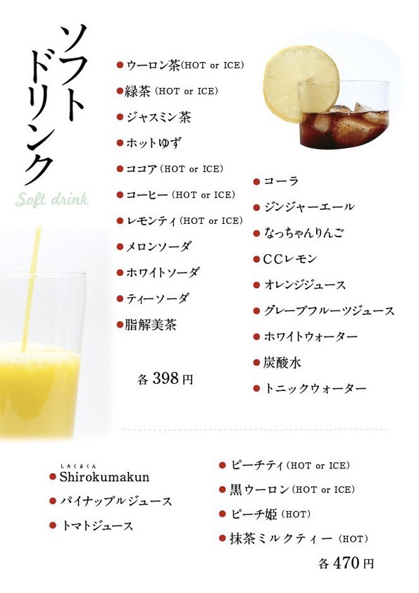 紅茶 ソフトドリンクお酒メニュー小山市居酒屋 心。