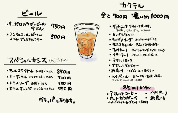 ドリンクメニューが改定されました。イルピアット京都円町と紙屋川のイタリア料理店。