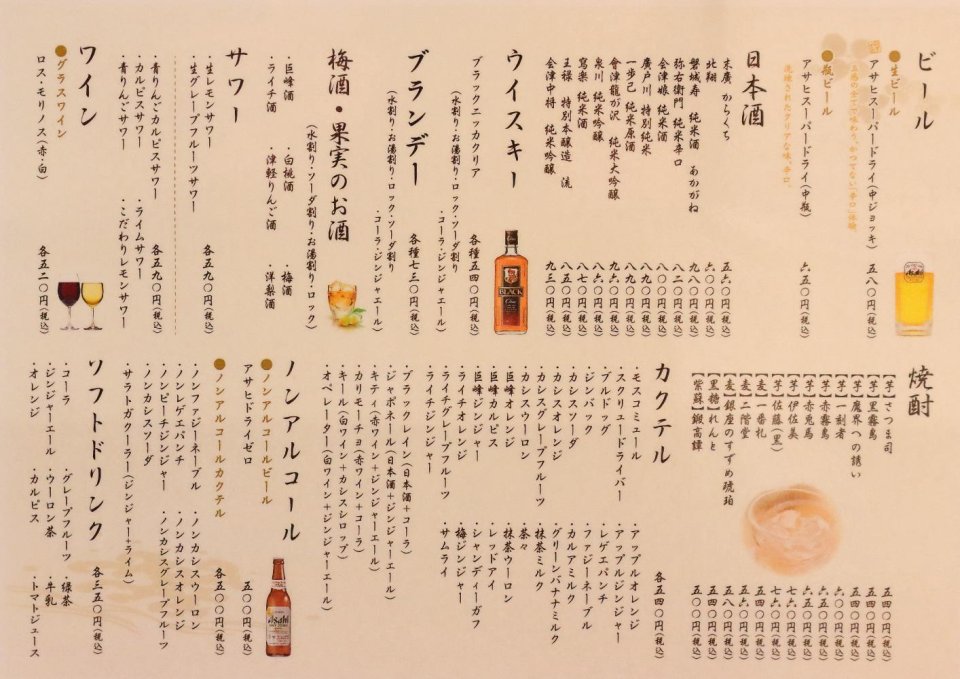ビール・日本酒・ウィスキー・ブランデー・焼酎・カクテル・果実酒・サワー・ワイン・ノンアル・ソフトドリンク 2020.03.12福島市の和食居酒屋ふくしき駅チカ・創作・馬刺し・求人・海鮮。