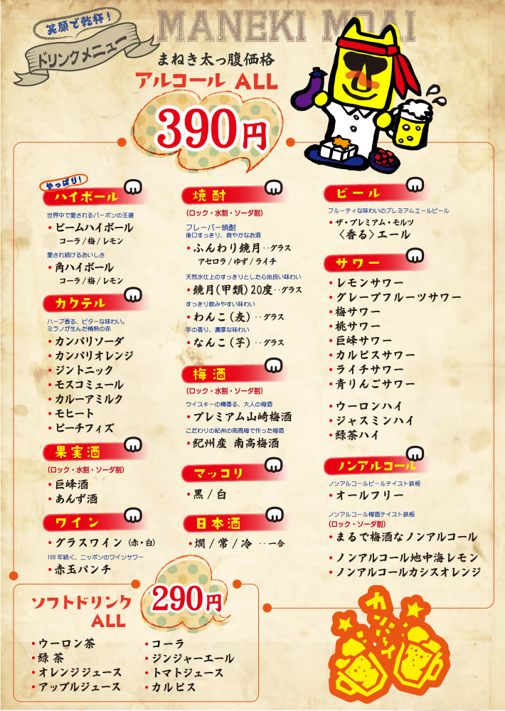 まねきもあいドリンクメニュー - 居酒屋まねきもあい。
