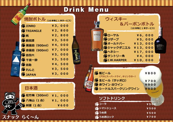 お酒&ソフトドリンクメニュー味自満@沖縄の居酒屋チェーン。