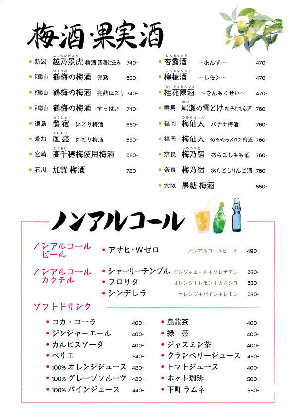 梅酒・果実酒、ソフトドリンク」創作和食 一の屋 いちのや のメニュー居酒屋。