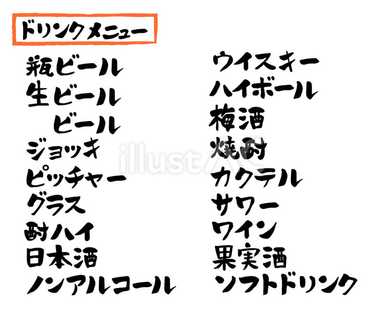 居酒屋・飲食店 筆文字お酒ドリンクメニュー:無料ダウンロードグッドナ。