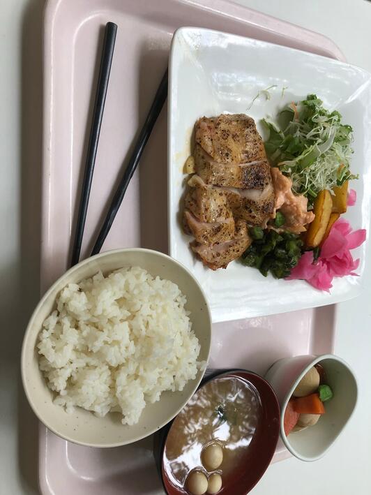 鶏肉の葱醤焼き&わかめスープ九段第2合同庁舎食堂@九段南1酒と三段バラの日々。