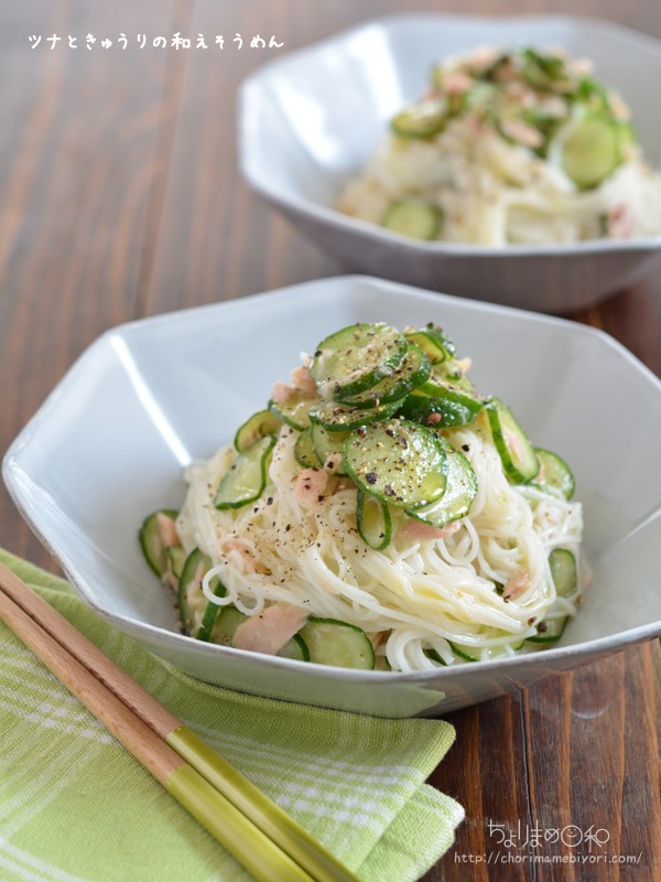 ツナときゅうりの和えそうめん。 汁なし・そうめんアレンジ・具は和えるだけ: ちょりまめ日和ちょりママ 西山京子 オフィシャル料理ブログPowered by ライブドアブログ。