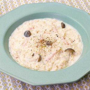 レンジで作るカルボナーラ風豆乳オートミールリゾット豆乳レシピマルサンアイのお料理レシピマルサンアイ株式会社。