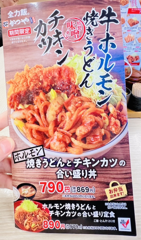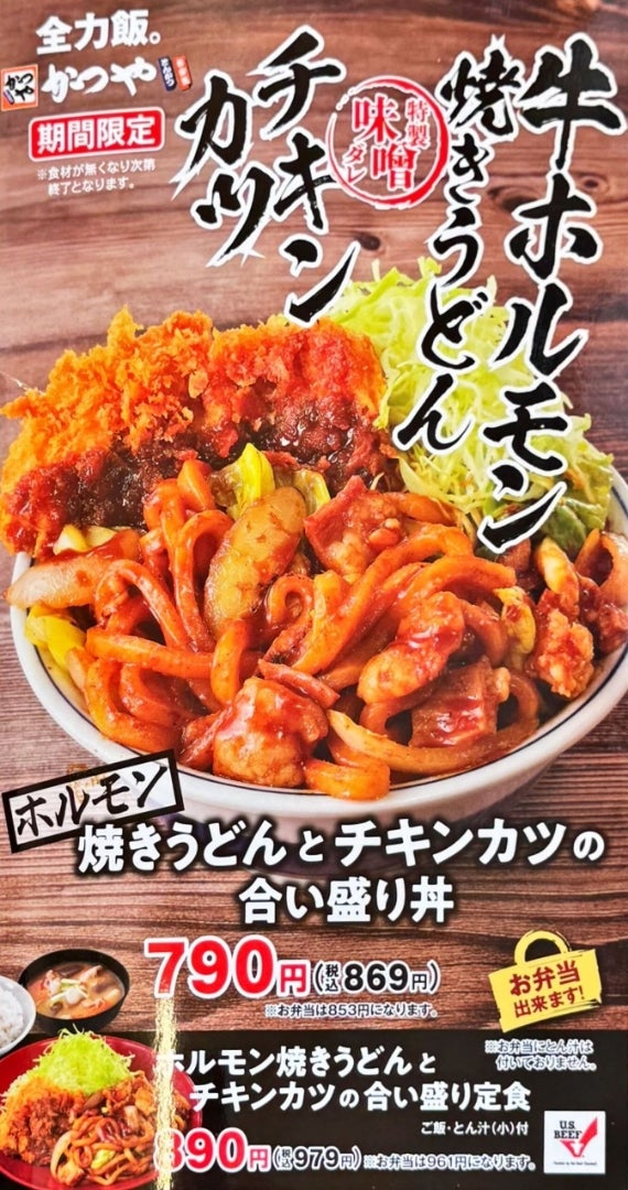 かつや 牛ホルモン焼きうどんとチキンカツの合い盛り定食aro40ladyのブログ。
