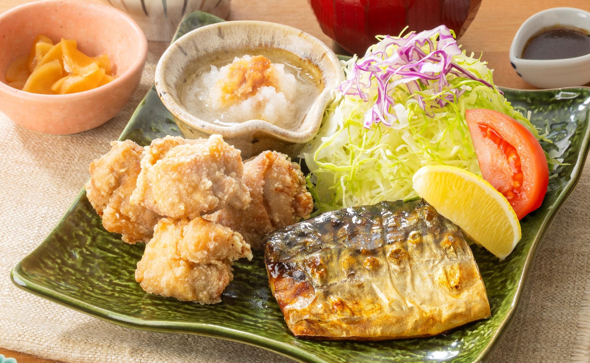 いいとこ取りで大満足な合い盛り定食に「さばの炭火焼きと鶏竜田揚げ」が新登場! 7月1日より全店グランドメニューリニューアル。株式会社大戸屋のプレスリリース。