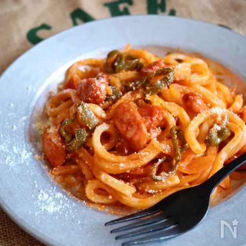 ハマごはん お手軽レシピon X: " レンジで簡単!うどんナポリタン①ベーコン、玉ねぎ 、ピーマン、ケチャップ、コンソメを耐熱容器に入れ、その上に冷凍うどんを入れて600W6分ほど温める②ブラックペッパーを混ぜて、粉チーズとパセリを加えたら完成 超簡単で激。
