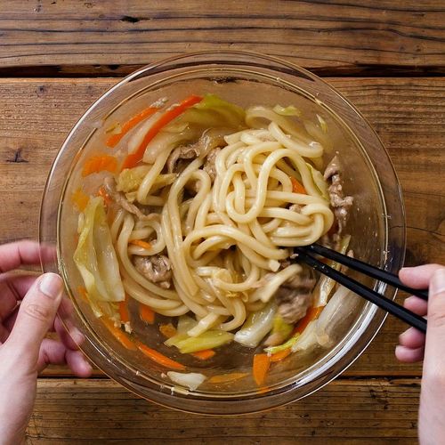 15分以内で!今回は「冷凍うどん」を使ったレシピをご紹介♪ 🌟3位 レンジで汁なしカレーうどん □材料 2人分 15分・冷凍うどん:2玉・豚ひき肉:100g ・玉ねぎ:1 2個 ・カレールー:40g ・ケチャップ:大さじ2杯 ・水:80cc <トッピング> ・温泉卵:2個 ・小口。