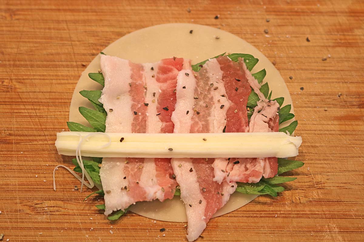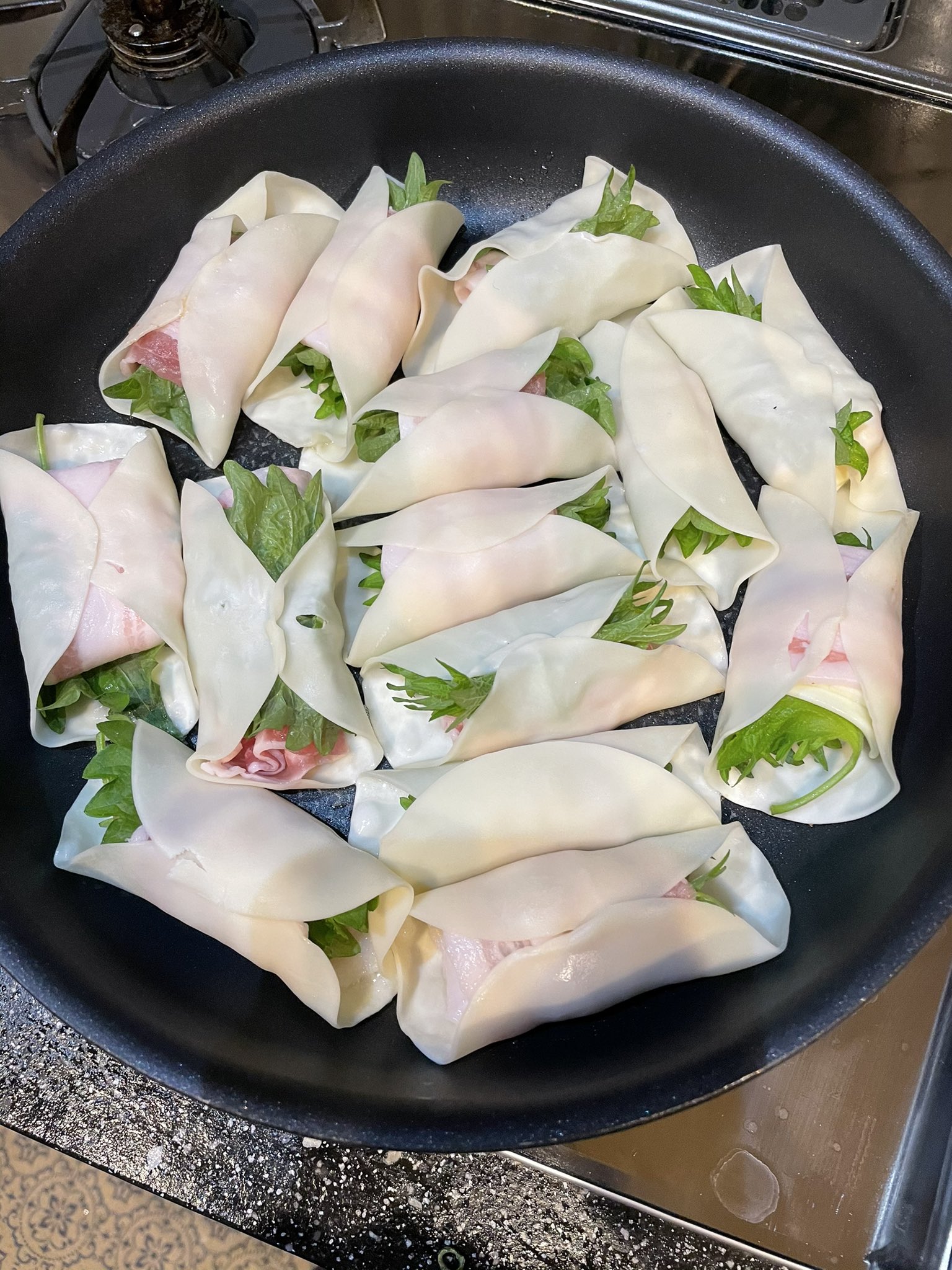 まるみキッチン 簡単レシピon X: " ぎょうざの皮で豚バラ大葉チーズ巻き①プロセスチーズ4つを半分にカット ②ぎょうざの皮→大葉→豚バラ→チーズの順にのせて包む③フライパンにサラダ油を1cmほどひき②をサッと揚げ焼きすれば完成 https:t.co HS9CB4G4Bv"X。