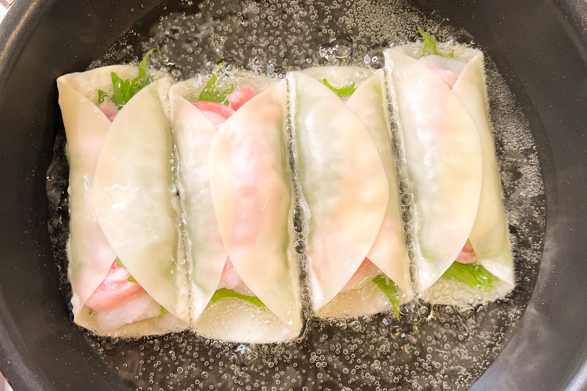 作り置き 餃子の皮でパリパリに! ウインナーの 大葉 巻き のレシピ 作り方。