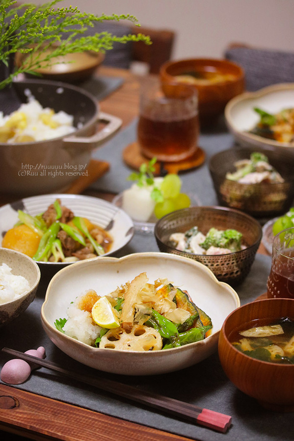 晩ごはん献立 栗ごはんと冷しゃぶと粉吹き芋~ひねくれ者の晩ごはん~ - ❁︎節約ごはん&日常~ときどき三兄弟~❁。