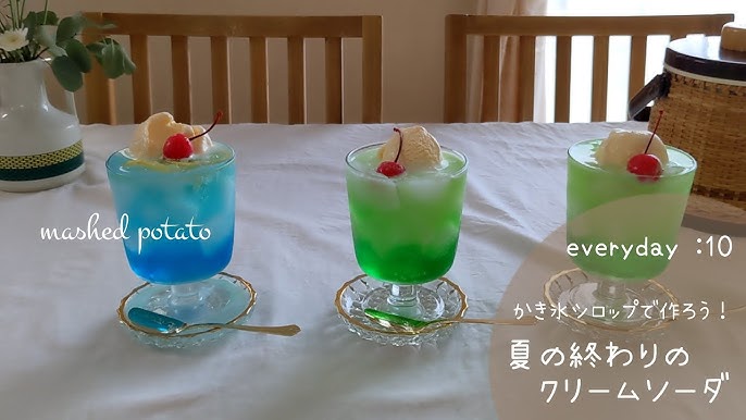 余ったかき氷シロップで作るカンタンクリームソーダ!,かき氷シロップ、氷、炭酸水 甘くない をコップに入れて、バニラアイスを乗せるだけ!超簡単なのに、喫茶店の味がお家で楽しめます。,かき氷シロップは、メロン味を使えばもちろんメロン風味になりますし、ブルーハワイだけでも爽やかなクリームソーダになります。お好みで、ゼリーや果物をプラスしても♡,。
