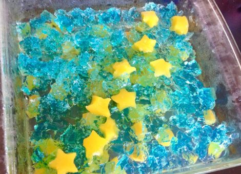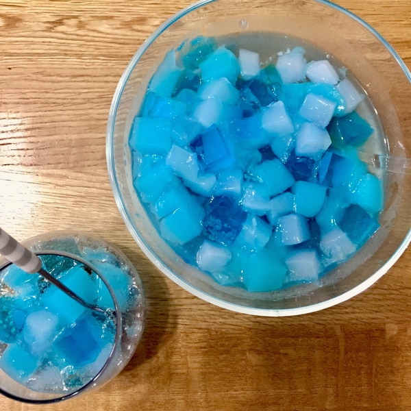 あゆのこどもごはんかき氷シロップで簡単!クリームソーダゼリーおうちごはん。
