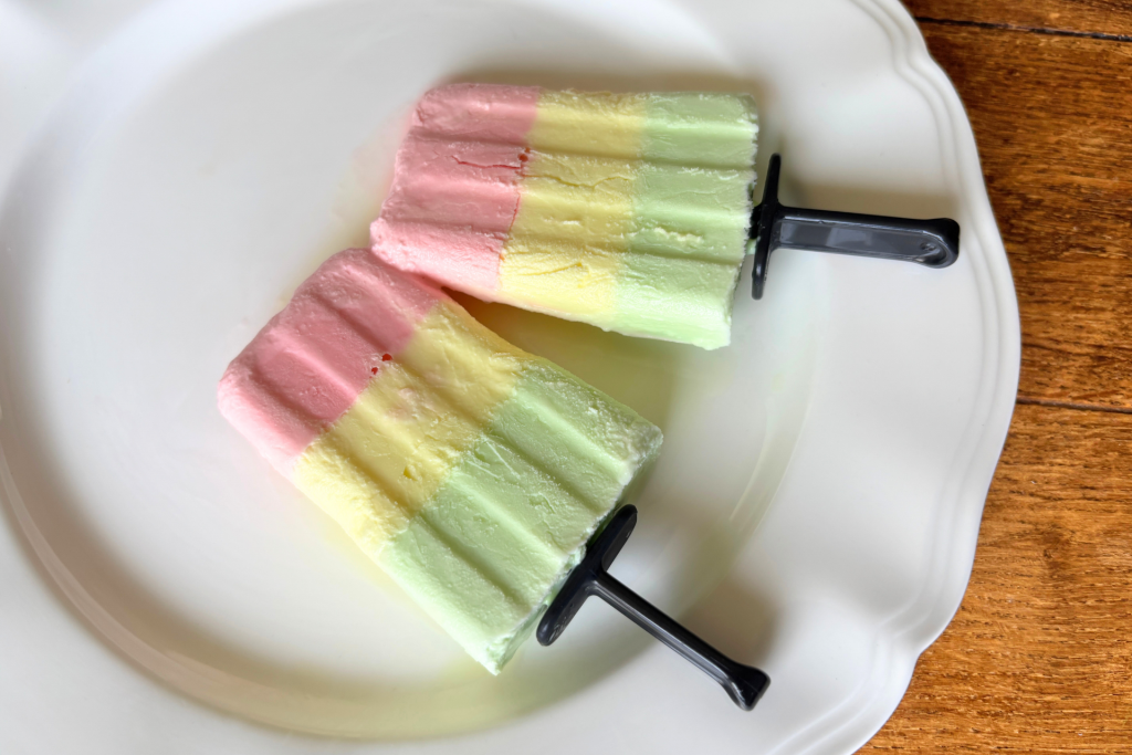 かき氷シロップと牛乳で! 2色のひとくちキューブアイス。