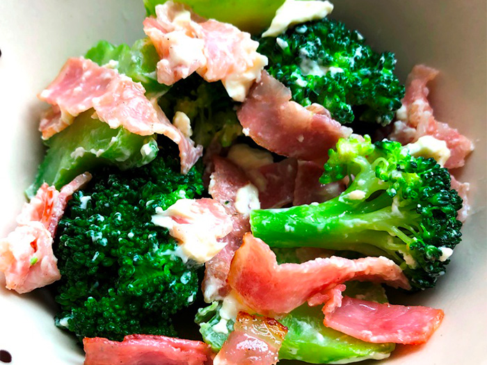 レンジでさっと作れる! ブロッコリーと豚バラ肉の辛子しょうゆあえ。