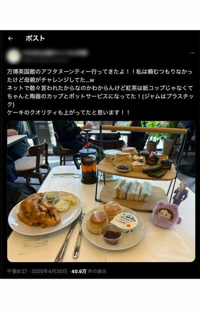 紙コップ提供で物議の"万博のアフタヌーンティー" 投稿者が騒動の誹謗中傷に困惑、英国側からは直接連絡ENCOUNT。