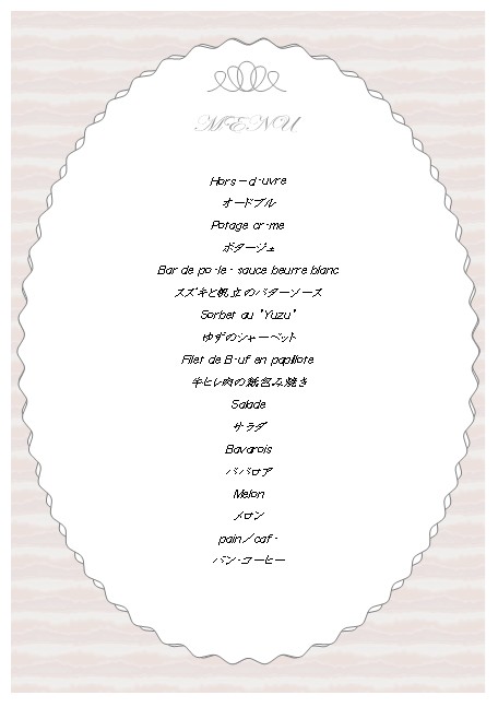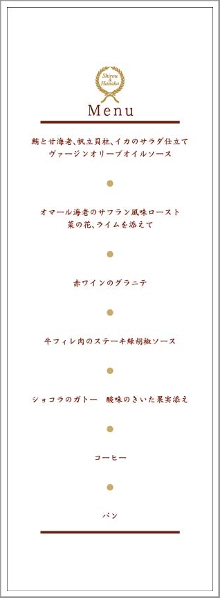 コース料理のメニューの書き方について教えてください。 - メニュー表を作っ- Yahoo!知恵袋。