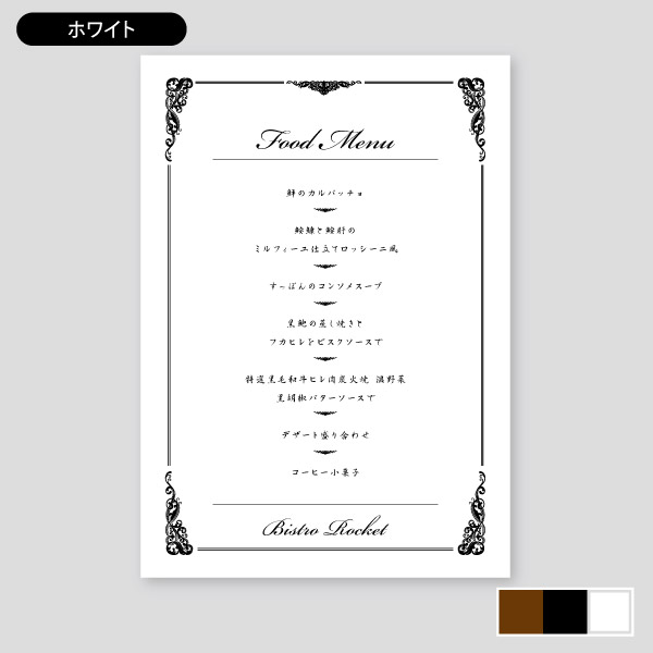 フランス料理1飲食店用メニュー印刷のロケットプリント。