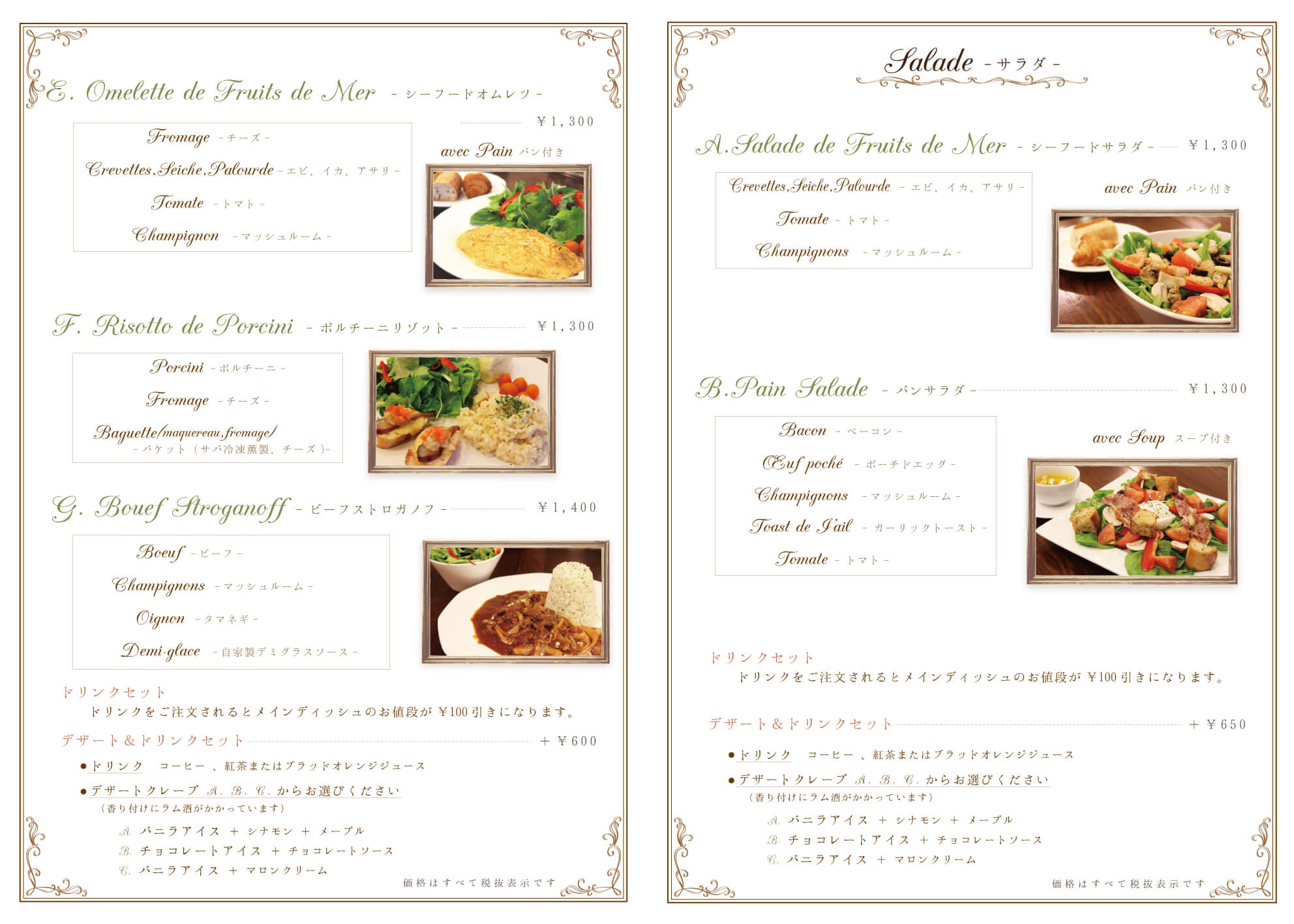 フランス料理2飲食店用メニュー印刷のロケットプリント。