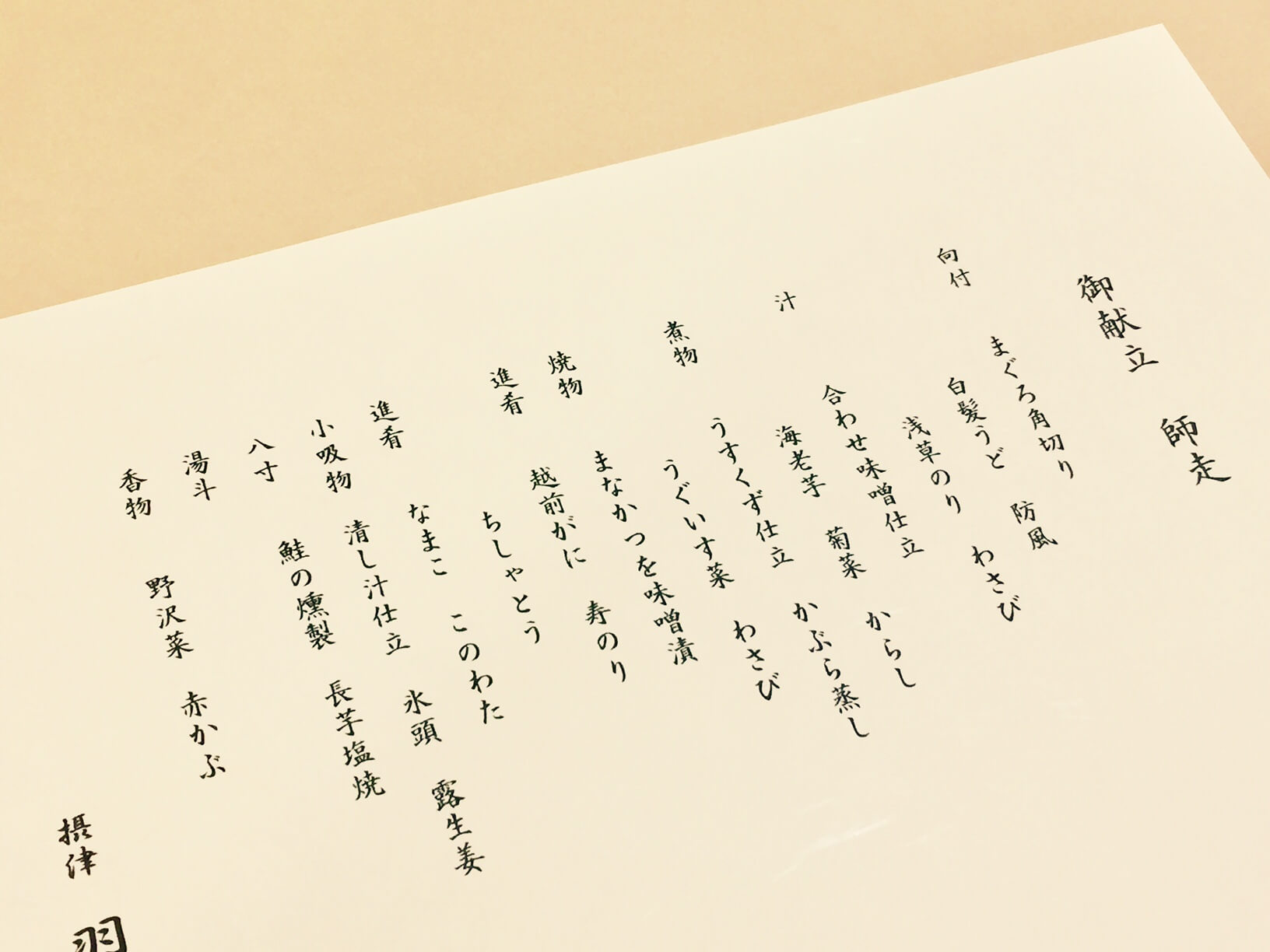 コース料理のお品書き作成・印刷に特化した専門店・お品書きドットコムお品書きドットコム。