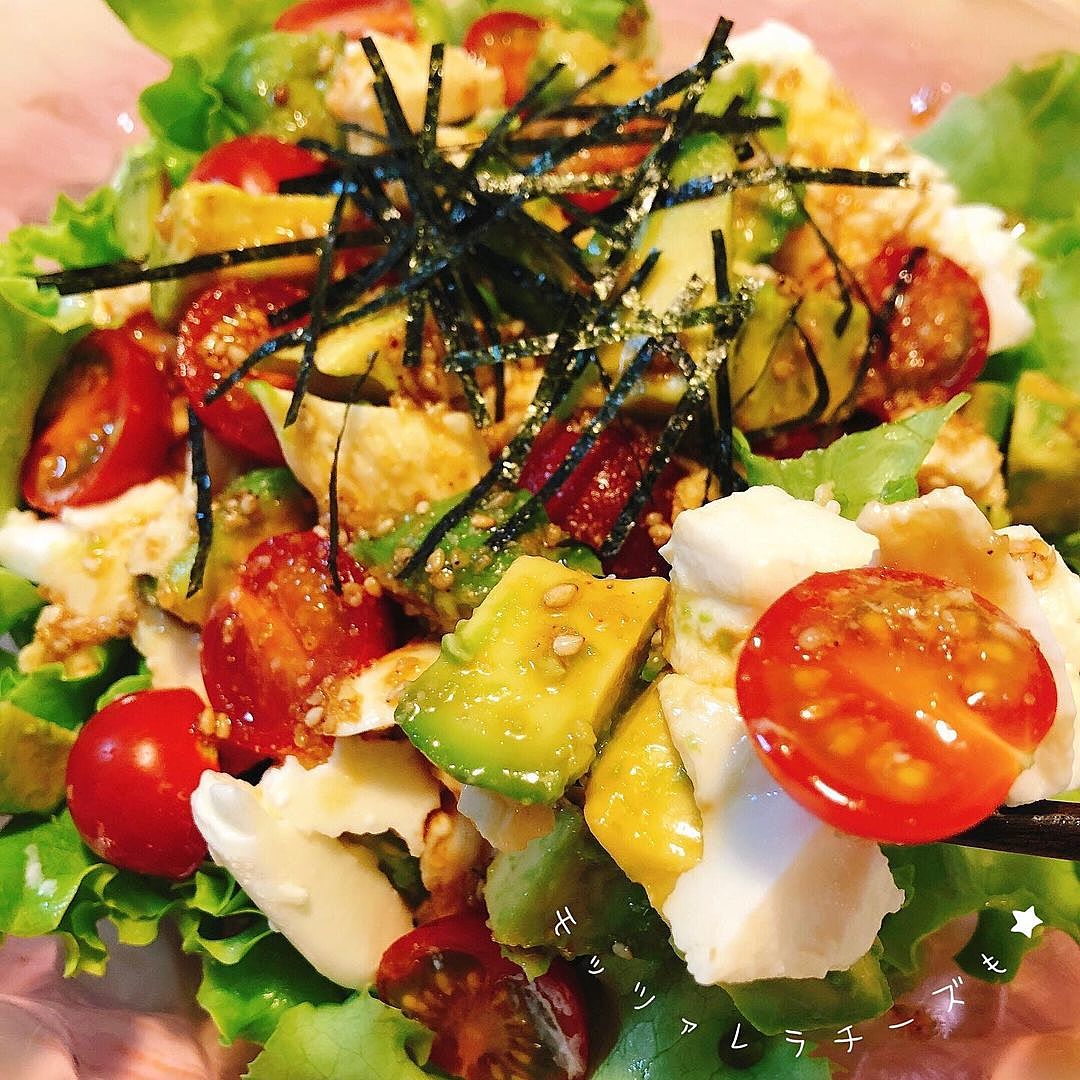 アボカドとモッツァレラのおかか和えぽむさん家のおうちご飯。