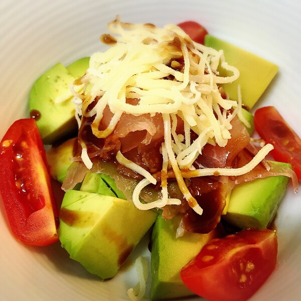 アボカド生ハムモッツァレラチーズのわさび醤油和え♪。