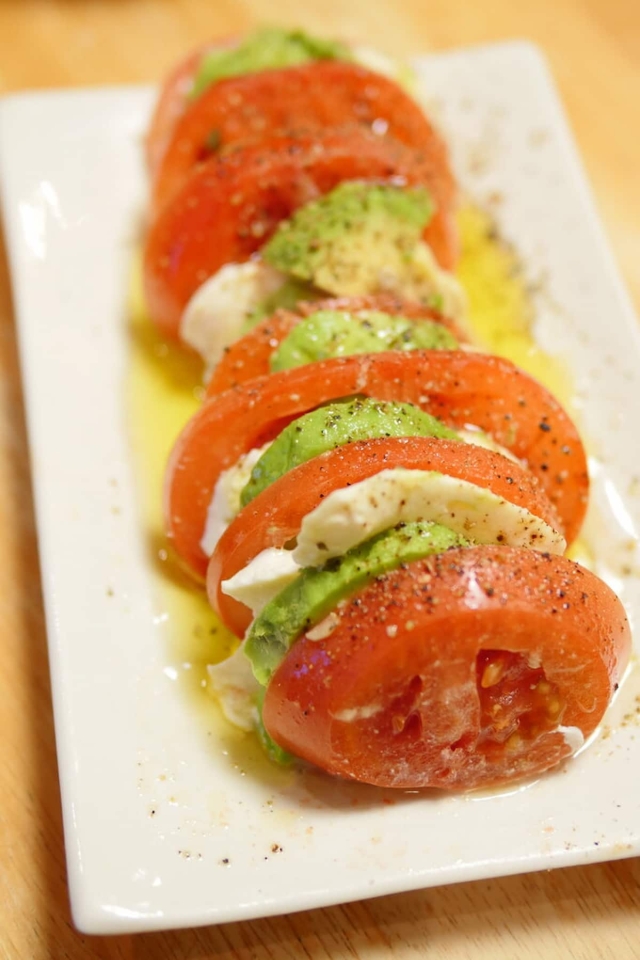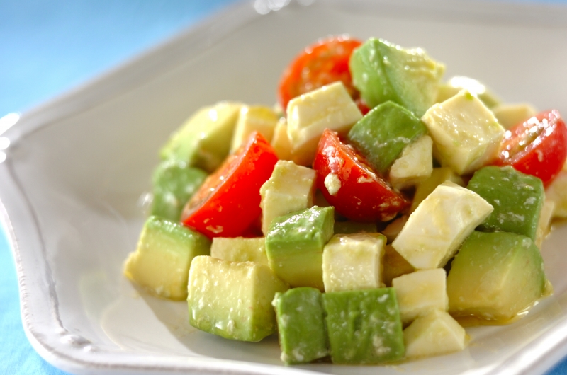 副菜 美味しい意外な組み合わせ!アボカドとモッツァレラのサラダ めんつゆわさびドレッシング家庭料理レシピ・元ドイツ駐在妻〜家庭料理をもっと楽しく、食卓を明るく!〜料理研究家アンナ アンナのキッチン。