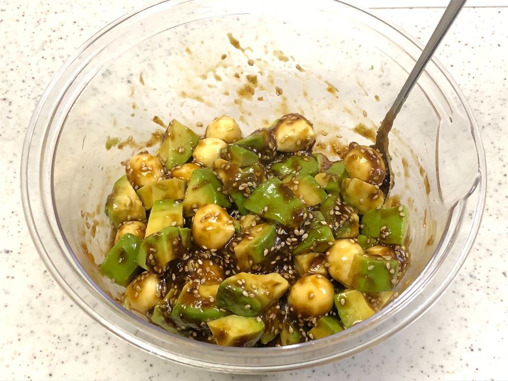 モッツァレラチーズとアボカドのわさび醤油和えクラシル。