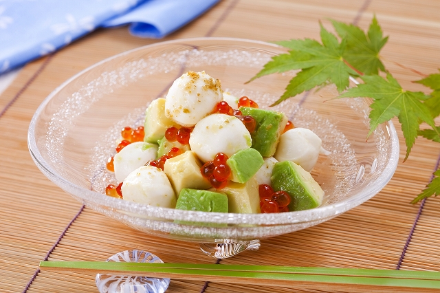 モッツァレラとアボカドのわさびしょうゆ和え – 北海道日高乳業株式会社。