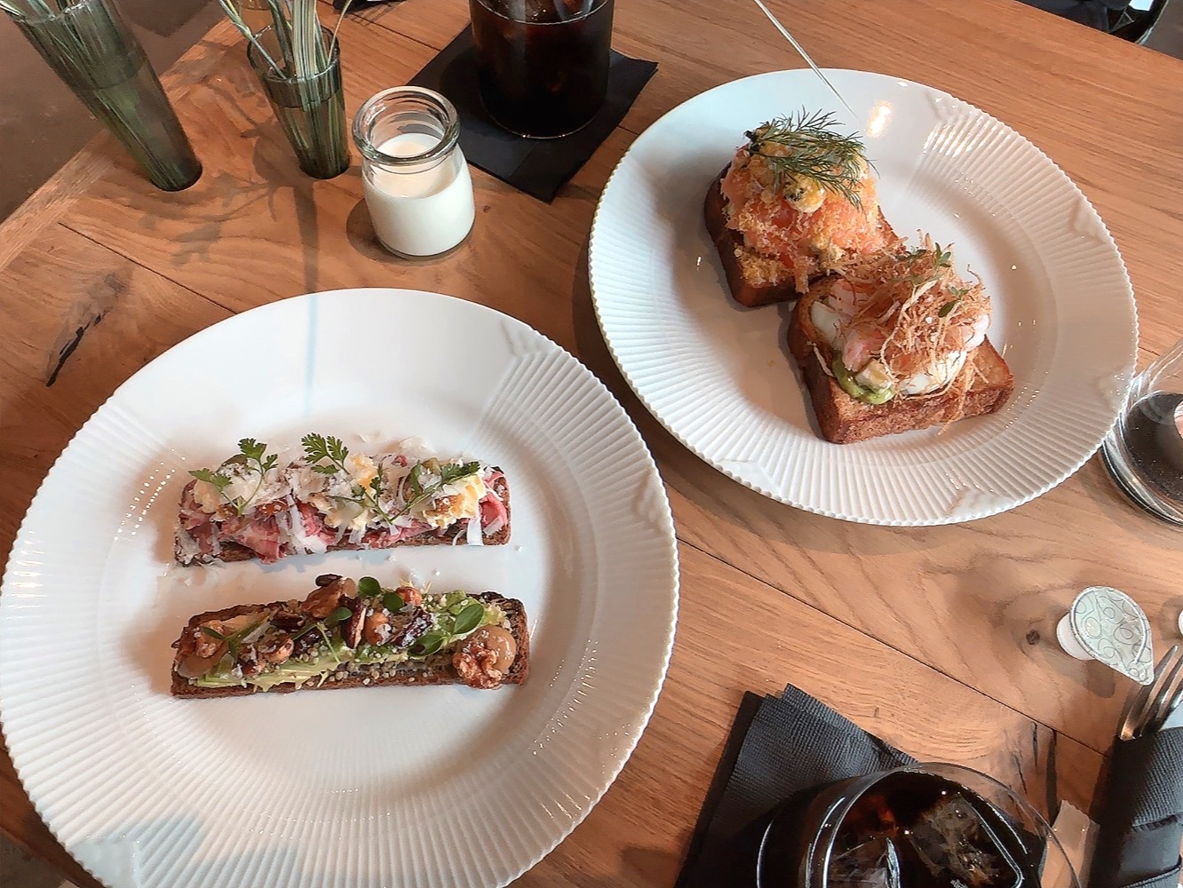 表参道ニコライバーグマンカフェノムでオープンサンド♡。