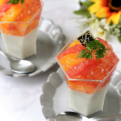 とろけるココナッツブランマンジェと柑橘の爽やかジュレ。