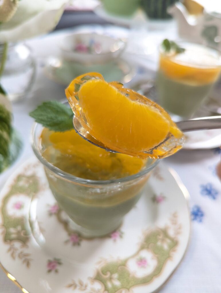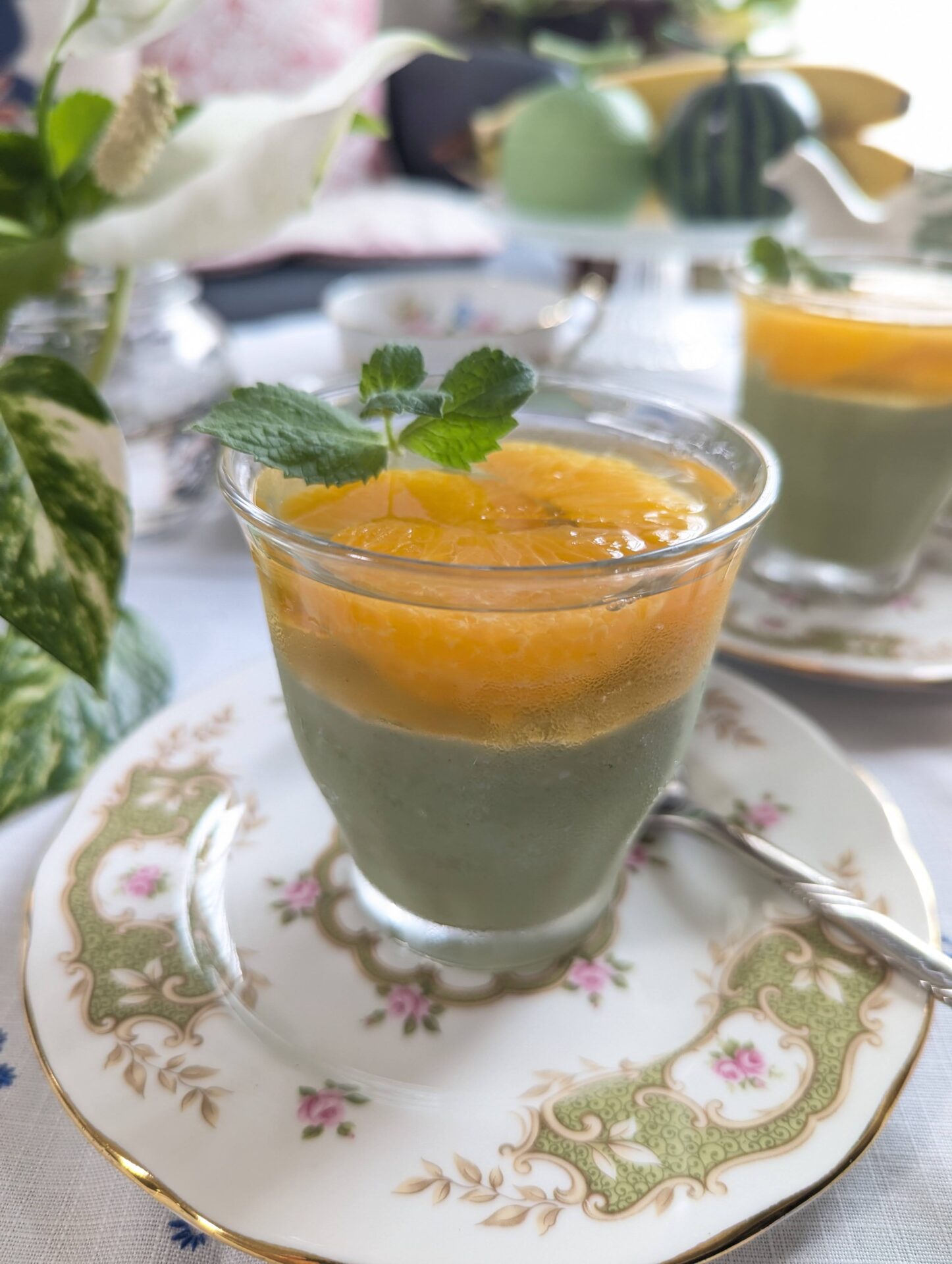 抹茶のブラマンジェ~みかんゼリーで2層、簡単レシピと作り方Fumiteaブログ~紅茶とお菓子。