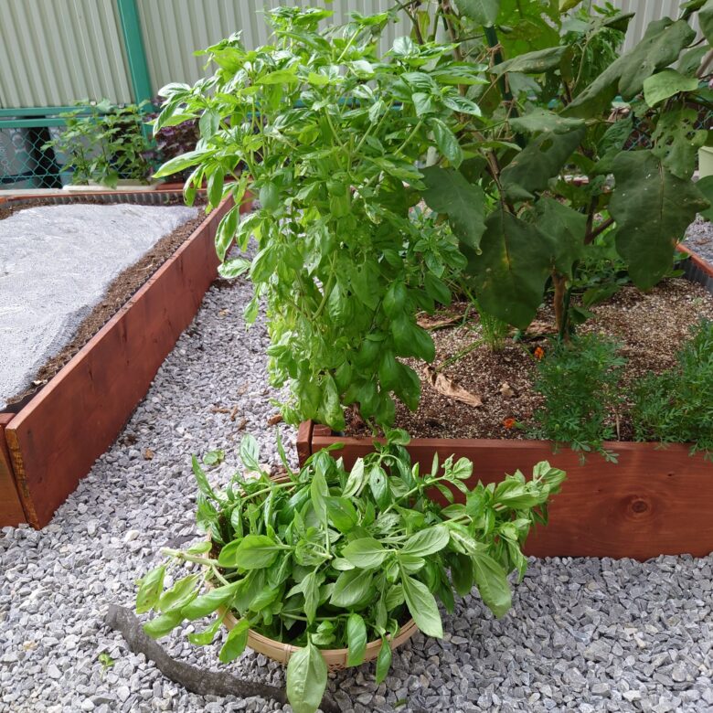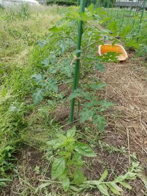 自然の力を生かせ!山田君~その48ナスの株間にバジルコンパニオンプランツ。