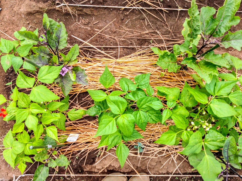 ナス コンパニオンプランツ ナスと混植している落花生の根元マルチを広げてみましたしぜんらぼ。