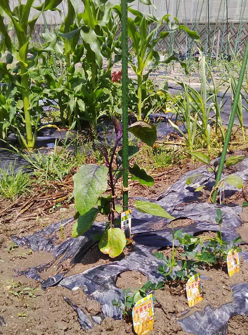 落花生、ナスの株間に混植してますプリメロ菜園通信。