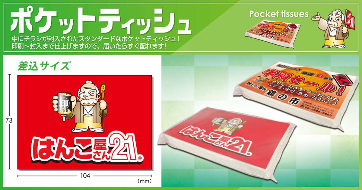 無地ポケットティッシュレギュラーサイズポケットティッシュ本舗。