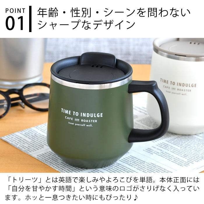 マグカップ フタ付 サブヒロモリ トリーツ 目盛り付ステンレスサーモマグカップ マグカップ 400ml ギフト 2WAY コールド ホットコーヒーカップ。
