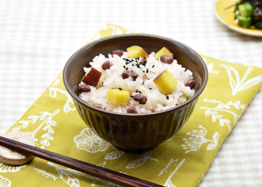 カンタン!小豆」とさつまいもの炊き込みごはんレシピはくばく。