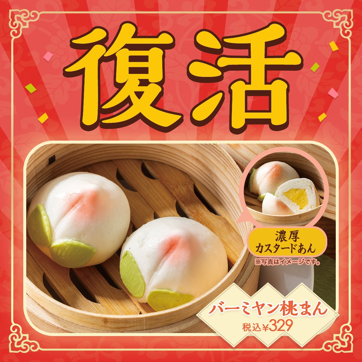 桃まん カスタード餡 -食べ放題メニュー中華街・横浜大飯店。